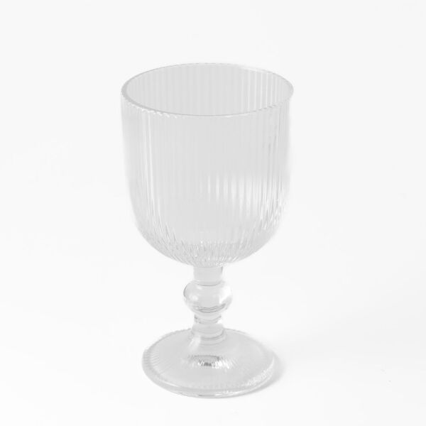 Copo neutro para serviço á mesa em tons transparente com riscas salientes e com pé