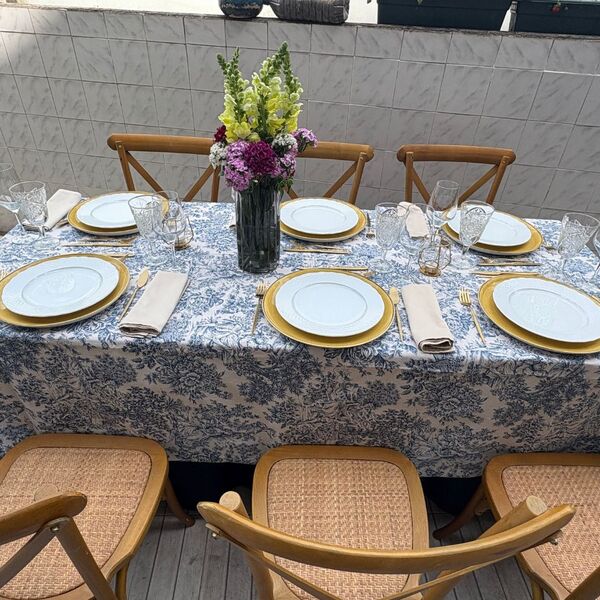 Home aluguer de material aluguer de toalhas de mesa sublime toalha jardim antigo azul retangular 2.60 x 1.60